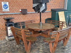 Rygning er kun tilladt på de opmærkede områder i gården, og man skal benytte de opstillede askebægre.