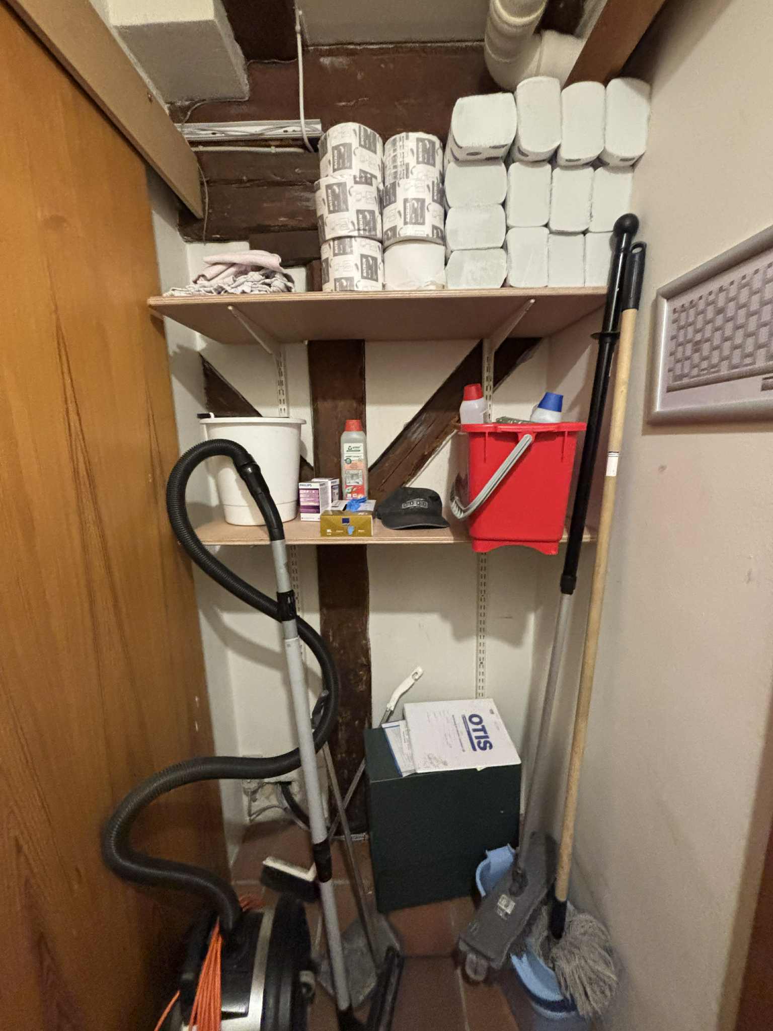 Ekstra skraldeposer ligger i rengøringsrum.