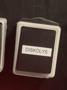 Der er diskolys på scenen. Det tændes på denne knap. Det er musikstyret, så der skal ikke indstilles noget.